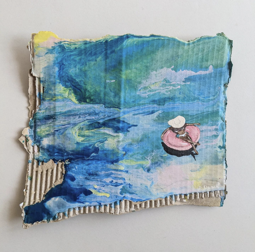 Meine Werke verbinden verschiedene Stile der Malerei, sie kombinieren das Abstrakte mit dem Realistischen. Inspirieren lasse ich mich von alltäglichen Situationen: Ein spielendes Kind auf dem Boden, eine Person, die aus dem Fenster schaut, ein aus der Hand gefallenes Eis. Ich greife die Einfachheit der Dinge auf, gebe ihnen eine Fläche und widme ihnen ein Werk, das diese Einfachheit vertieft. Meine Bilder laden somit ein, einen Moment innezuhalten und zu träumen. Je nach eigener Stimmung und Prägung löst jedes Bild etwas anderes in einem aus. Dieses Gefühl finde ich ganz besonders beeindruckend und spannend. Kurz gesagt: I LOVE IT.